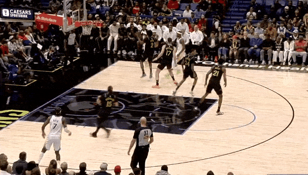 坏消息,杰伦·布朗飞身扑球撞到小琼斯腿后,小琼斯被抬下场